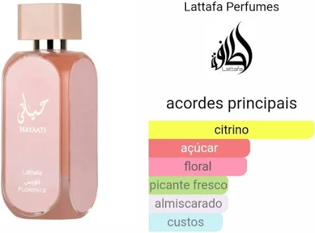 Hayaati Florence é uma fragrância feminina doce, elegante e envolvente. Abre com notas frutadas suaves, evolui para um coração floral delicado e termina numa base quente e cremosa de baunilha e almíscar, oferecendo um aroma sofisticado e cativante. Ideal para mulheres que desejam um perfume feminino, elegante e memorável.